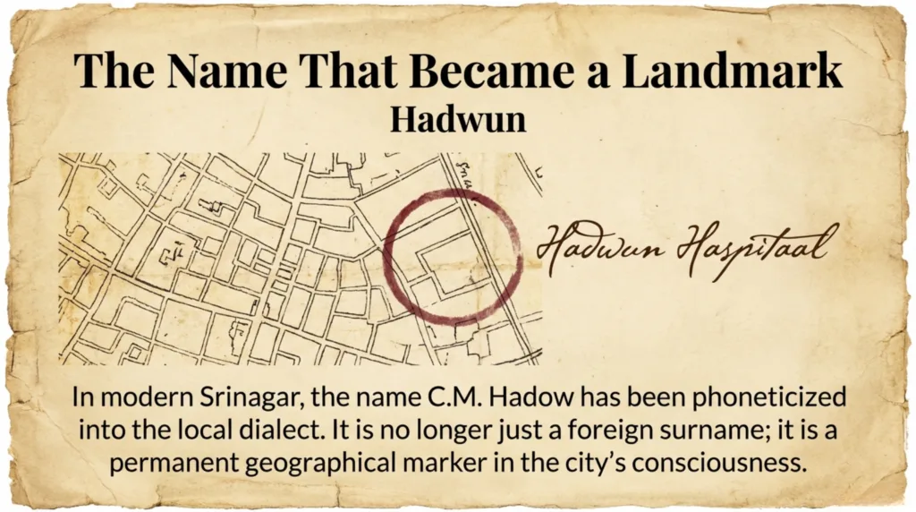 Decades after his departure from Kashmir, C.M. Hadow’s name remains woven into the fabric of daily life, preserved in the names of the very institutions he helped create.