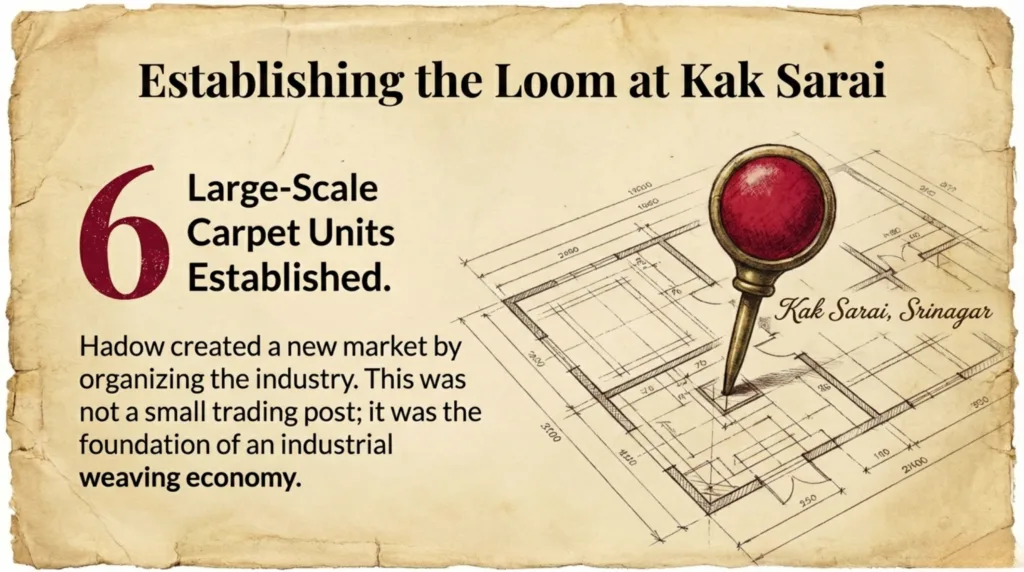 Hadow’s primary impact was felt in the revitalization and professionalization of the Kashmiri carpet industry. He was not just a merchant but a builder of institutions and a leader known for his ethical practices.
