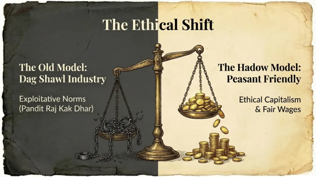 This practice stood in stark contrast to the exploitative methods employed by figures like Pandit Raj Kak Dhar of the Dag Shawl Industry. For local workers, Hadow’s fair wages offered dignity, stability, and a reliable livelihood in a time when such treatment was not guaranteed.